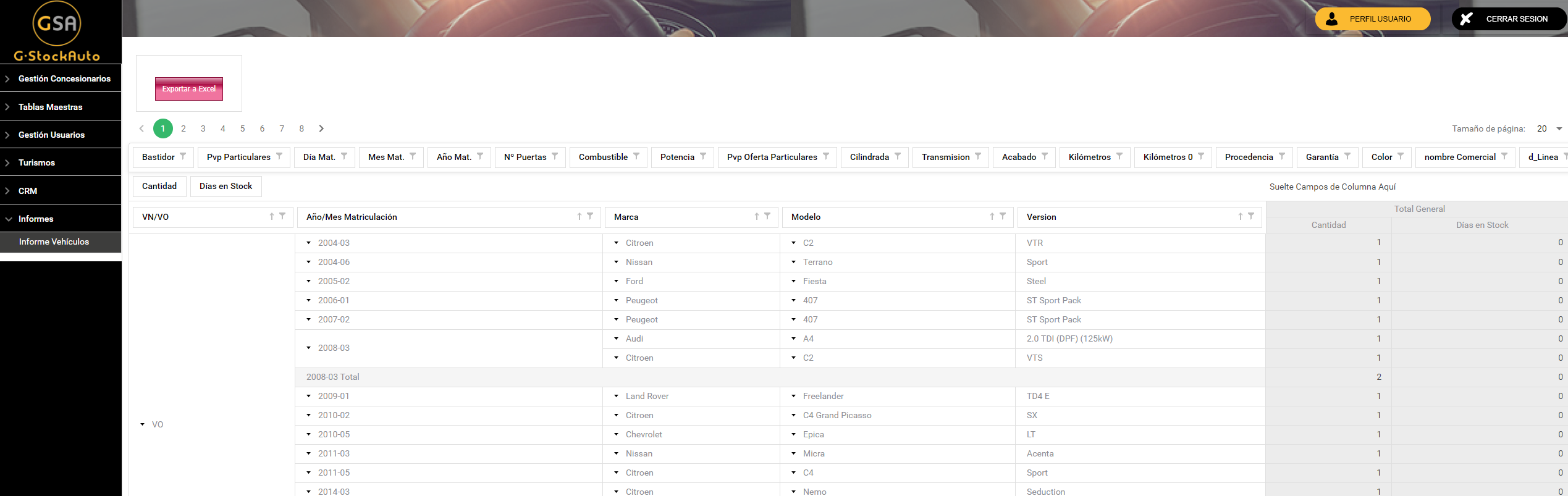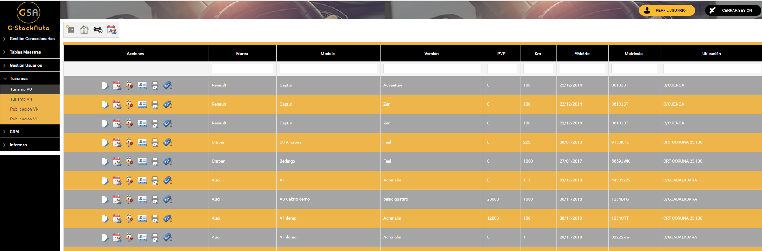 Desde esta aplicación se podrá llevar una gestión de stock de vehículos y del proceso de ventas de los mismos. Interface con DatIberica, ImaWeb, CitNow, Quiter.